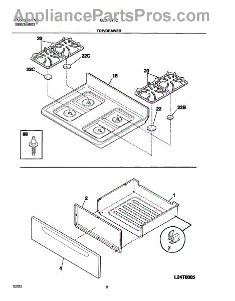 Parts for Frigidaire GLGF377CQA: 09 - Top / Drawer Parts