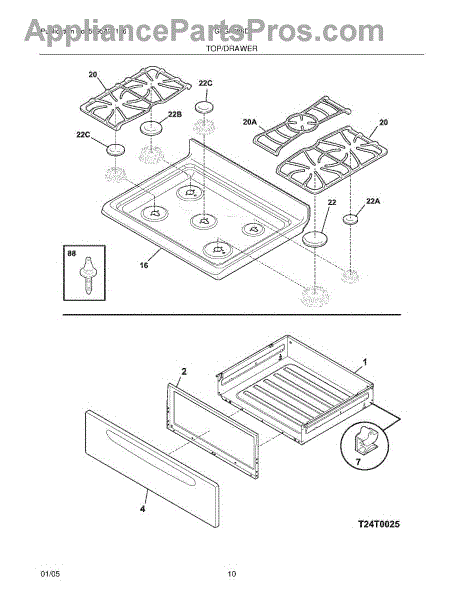 Parts for Frigidaire GLGF386DSB: 09 - Top / Drawer Parts