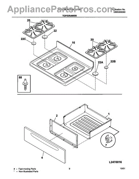 Parts for Frigidaire GLGF388ABB: 09 - Top / Drawer Parts