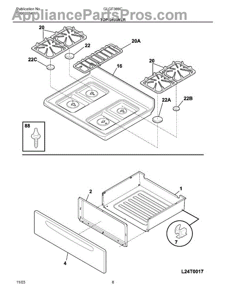 Parts for Frigidaire GLGF388CSB: 09 - Top / Drawer Parts