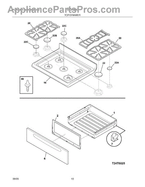 Parts for Frigidaire GLGF388DQE: 09 - Top / Drawer Parts