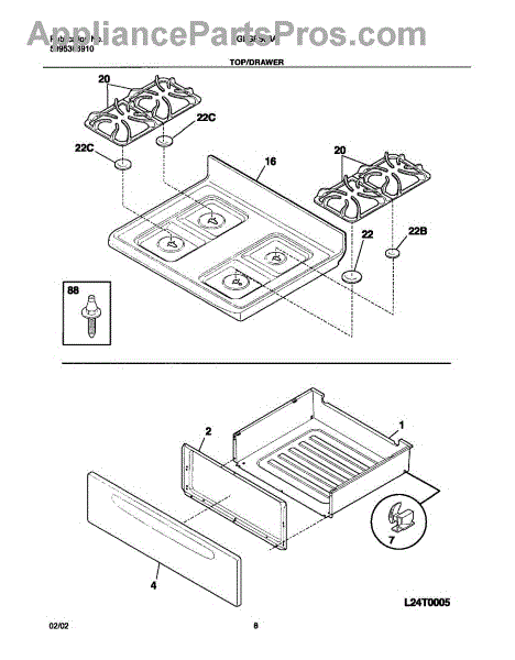 The Rear Drawer Glide is an OEM part for Frigidaire ovens and ranges. It is designed to provide smooth movement for the oven's rear drawer. The rear drawer glide allows the drawer to slide in and out with ease, providing convenient access to storage space or broiler pans. This is the glide that attaches to the rear of the oven drawer. For front glide that attaches to the body use 3051162. Two front and two rear are used for each stove. One for each corner.
