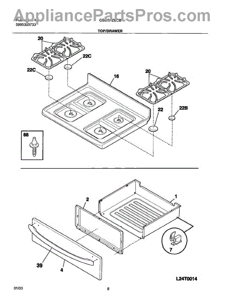 The Rear Drawer Glide is an OEM part for Frigidaire ovens and ranges. It is designed to provide smooth movement for the oven's rear drawer. The rear drawer glide allows the drawer to slide in and out with ease, providing convenient access to storage space or broiler pans. This is the glide that attaches to the rear of the oven drawer. For front glide that attaches to the body use 3051162. Two front and two rear are used for each stove. One for each corner.