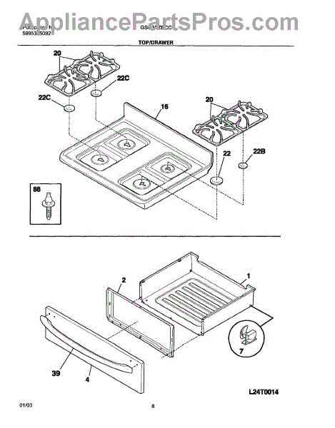 Parts for Frigidaire GSG3PZBCC: 09 - Top / Drawer Parts