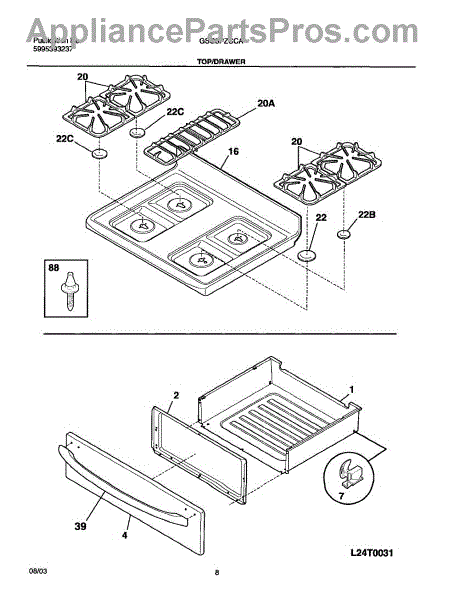 Parts for Frigidaire GSG3PZCCA: 09 - Top / Drawer Parts