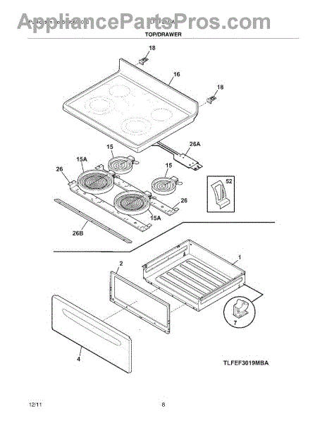 Parts for Frigidaire LFEF3019MBC: 07 - Top / Drawer Parts