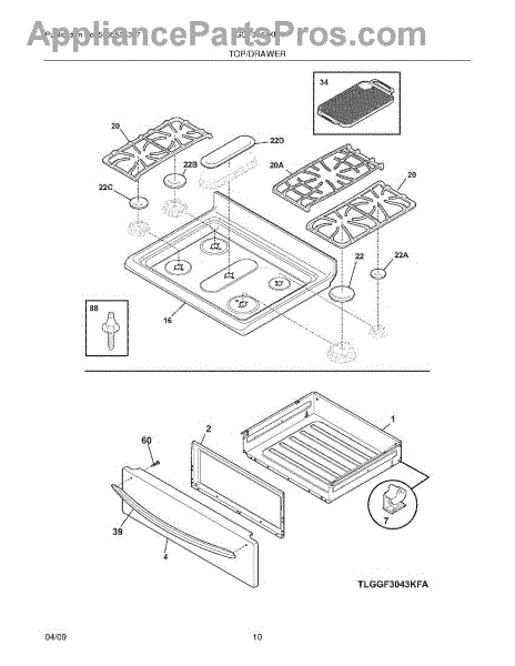 Parts for Frigidaire LGGF3043KFA: 09 - Top / Drawer Parts