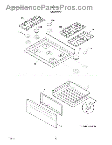 Parts for Frigidaire LGGF3044LBB: 09 - Top / Drawer Parts