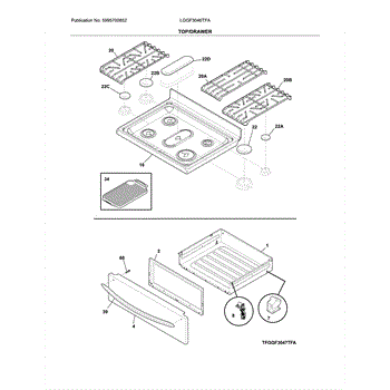 Main top assembly for gas ranges. Provides the cooking surface that supports grates and cookware. Replace if cracked, dented, bent, corroded, or worn.