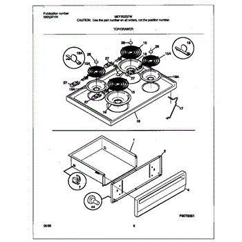This main top is the flat cooktop surface that mounts over a range's burner box to provide a stable, finished cooking surface and protect internal components from spills and debris. It restores a level, secure area for burners and cookware. What it does: