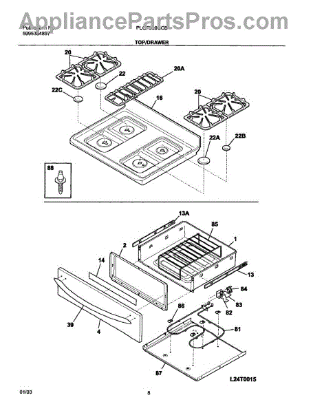 Parts for Frigidaire PLGF389CCB: 09 - Top / Drawer Parts