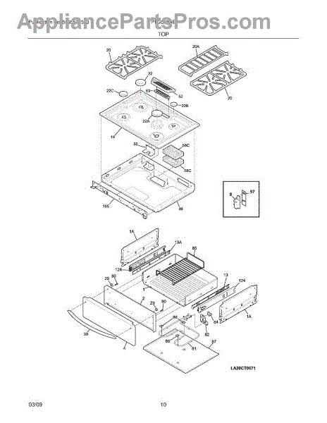 Parts for Frigidaire PLGS389ECJ: 09 - Top / Drawer Parts