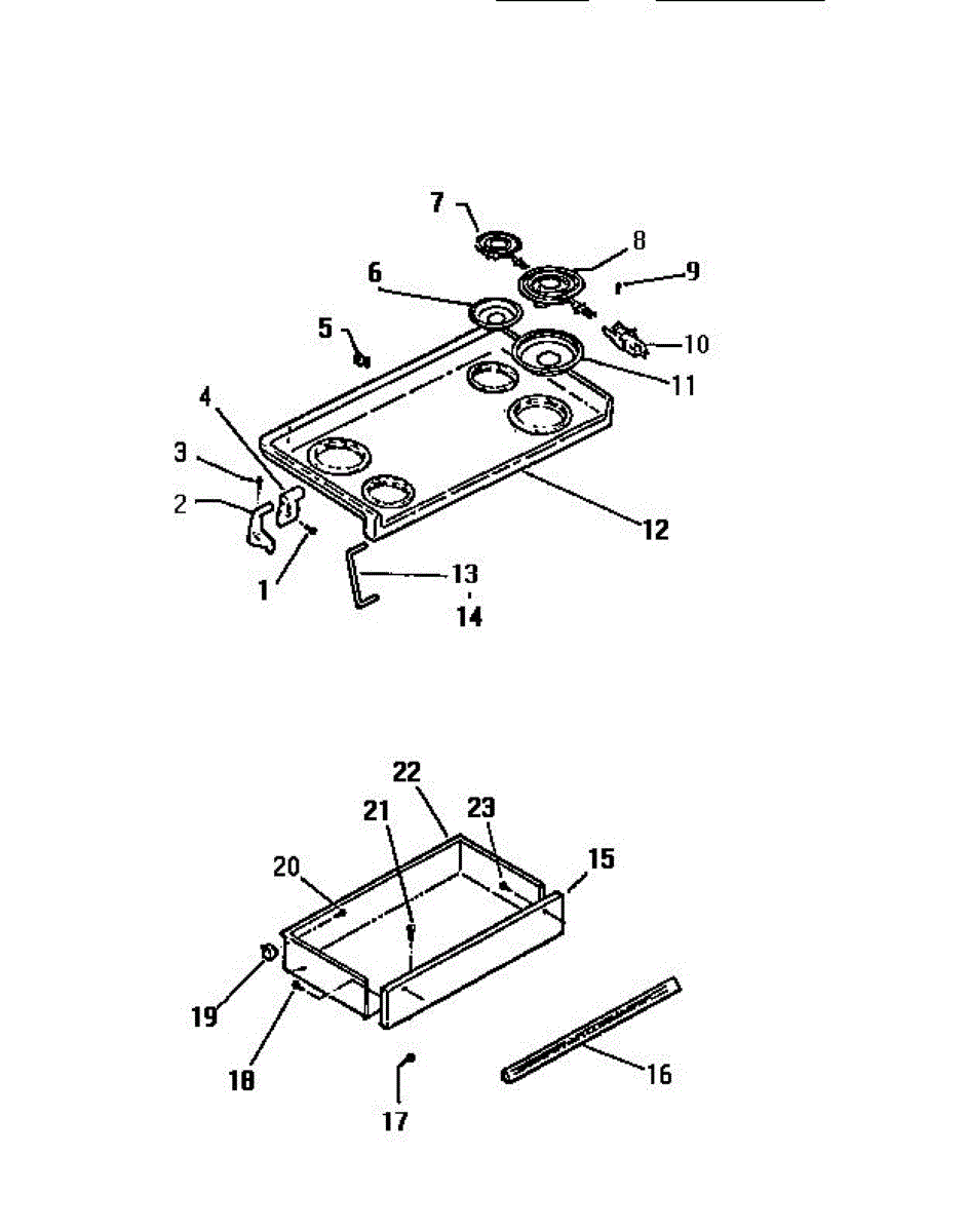 Support rod that holds the cooktop top in place. Replace this structural pin if the original is broken, bent, or missing to properly secure the top.