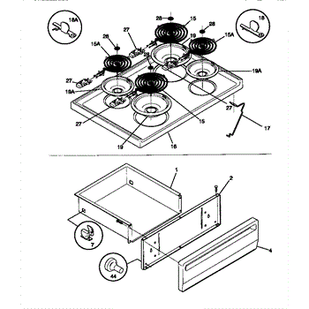 Parts for Frigidaire TEF352SCWA: 04 - Top / Drawer Parts