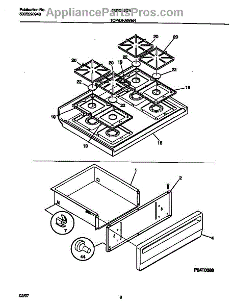 Parts for Frigidaire TGF355BEWC: 05 - Top / Drawer Parts