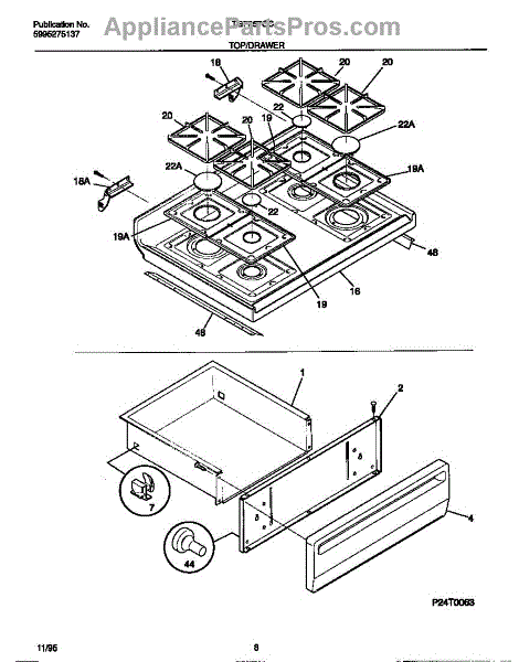The Rear Drawer Glide is an OEM part for Frigidaire ovens and ranges. It is designed to provide smooth movement for the oven's rear drawer. The rear drawer glide allows the drawer to slide in and out with ease, providing convenient access to storage space or broiler pans. This is the glide that attaches to the rear of the oven drawer. For front glide that attaches to the body use 3051162. Two front and two rear are used for each stove. One for each corner.
