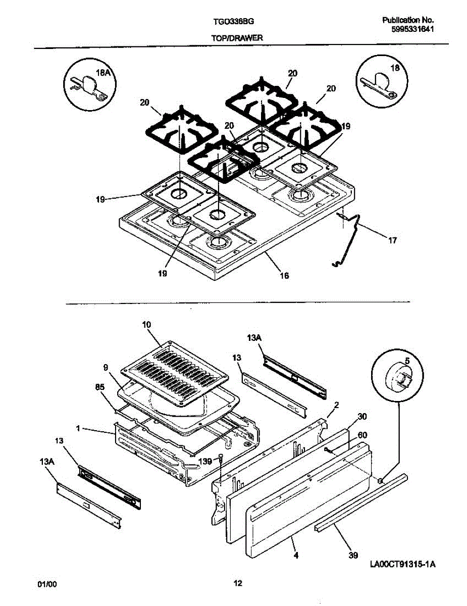 Parts for Frigidaire TGO336BGW1: 07 - Top / Drawer Parts
