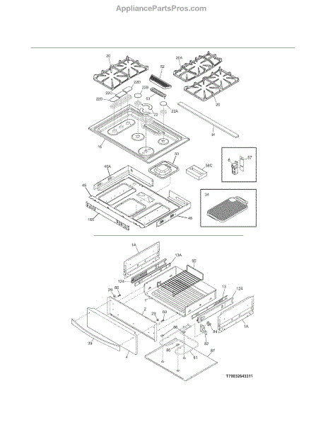Parts for Kenmore 790.32632314 (79032632314, 790 32632314): Top / Drawer Parts