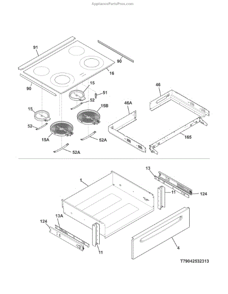 Parts for Kenmore 790.42531314 (79042531314, 790 42531314): Top / Drawer Parts