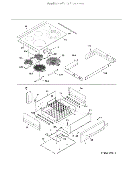 Parts for Kenmore 790.42569311 (79042569311, 790 42569311): Top / Drawer Parts