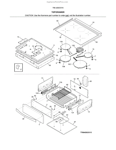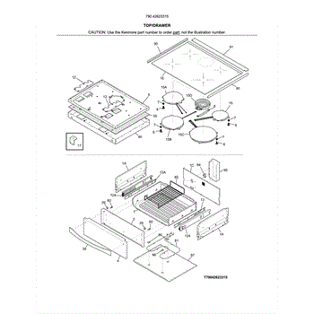 Parts for Kenmore 790.42623315 (79042623315, 790 42623315): Top / Drawer Parts