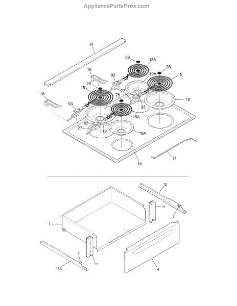 Parts for Kenmore 790.46762905 (79046762905, 790 46762905): Top / Drawer Parts