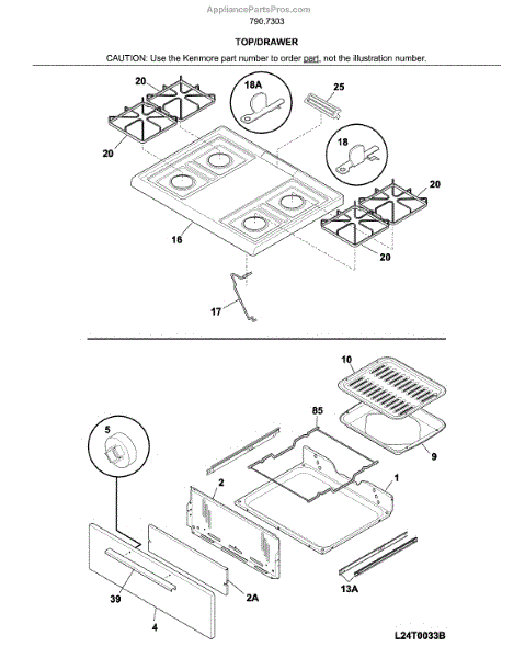 Parts for Kenmore 790.73032316 (79073032316, 790 73032316): Top / Drawer Parts
