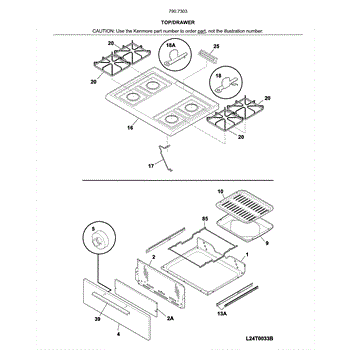 Parts for Kenmore 790.73039316 (79073039316, 790 73039316): Top / Drawer Parts