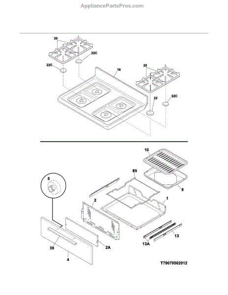 Parts for Kenmore 790.73232312 (79073232312, 790 73232312): Top / Drawer Parts
