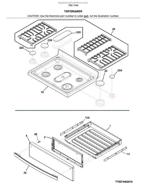 Parts for Kenmore 790.74462810 (79074462810, 790 74462810): Top / Drawer Parts