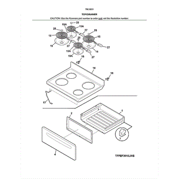 This is a Frigidaire main top for electric ranges. It sits beneath and holds the range's heating elements. If this part is damaged, it's usually obvious. It may dent or in some extreme cases, rust, and should be replaced if it's no longer able to hold heating elements.Before installing this part, make sure that power to the stove is cut, and do not begin repairs until the range is completely cool. A screwdriver, nut driver, and small dowel rod may be needed to install this part. Start by removing each heating element and drip pan. The old cooktop should be held in place with a number of screws or mounting brackets, the first of which may need to be accessed from inside the oven. Mounting hardware must be removed from the old cooktop and installed in the new one before putting the new cooktop in place.This is a genuine OEM part compatible with ranges from Frigidaire brands, including Electrolux, Frigidaire, Gibson, Kelvinator, Westinghouse, and others. This product includes no additional hardware.