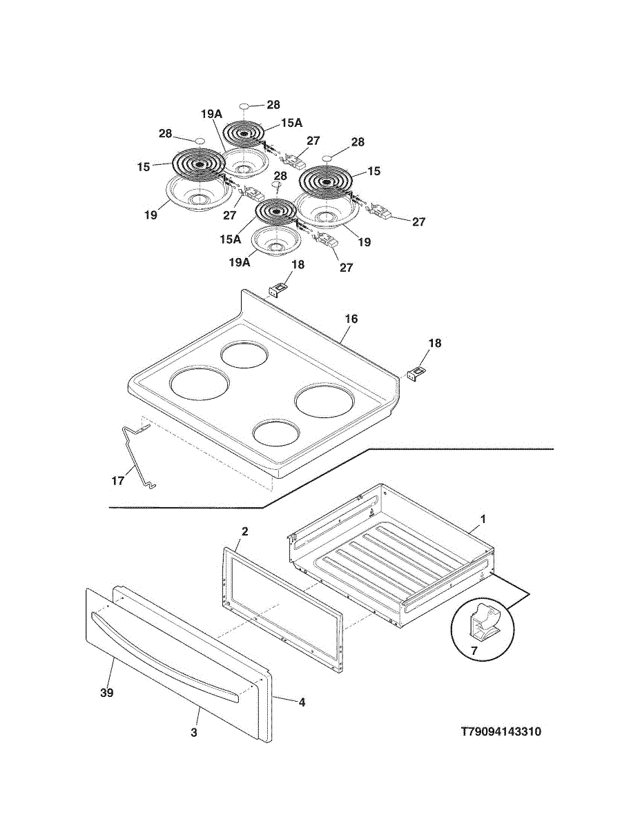 Replace your cracked or damaged electric range main top. This black cooktop surface restores appearance and provides secure mounting for burners and controls.