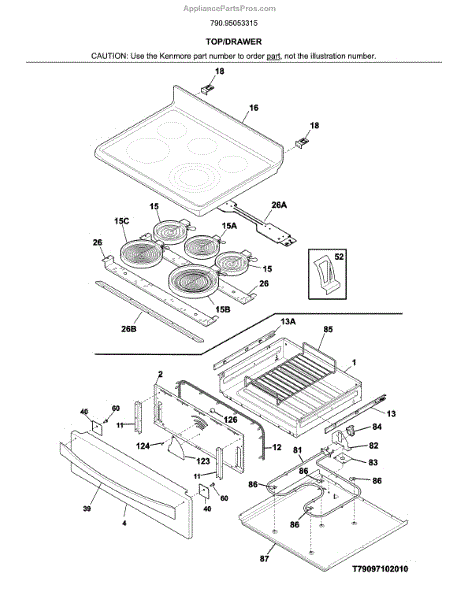 This top panel is the upper surface that covers and protects the range's internal components, providing a finished cooking surface and support for burners or elements. It restores a secure, clean top on the appliance. What it does