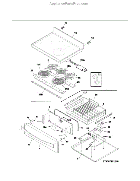 Parts for Kenmore 790.95063312 (79095063312, 790 95063312): Top / Drawer Parts