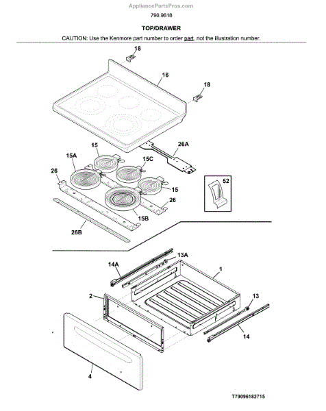 Parts for Kenmore 790.96182715 (79096182715, 790 96182715): Top / Drawer Parts