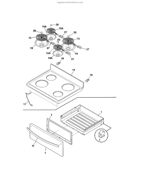 This is a Frigidaire main top for electric ranges. It sits beneath and holds the range's heating elements. If this part is damaged, it's usually obvious. It may dent or in some extreme cases, rust, and should be replaced if it's no longer able to hold heating elements.Before installing this part, make sure that power to the stove is cut, and do not begin repairs until the range is completely cool. A screwdriver, nut driver, and small dowel rod may be needed to install this part. Start by removing each heating element and drip pan. The old cooktop should be held in place with a number of screws or mounting brackets, the first of which may need to be accessed from inside the oven. Mounting hardware must be removed from the old cooktop and installed in the new one before putting the new cooktop in place.This is a genuine OEM part compatible with ranges from Frigidaire brands, including Electrolux, Frigidaire, Gibson, Kelvinator, Westinghouse, and others. This product includes no additional hardware.