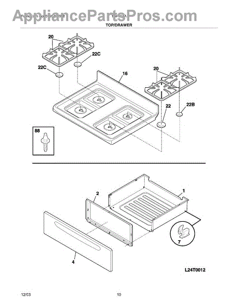 Parts for Tappan TGF364AQF: 09 - Top / Drawer Parts