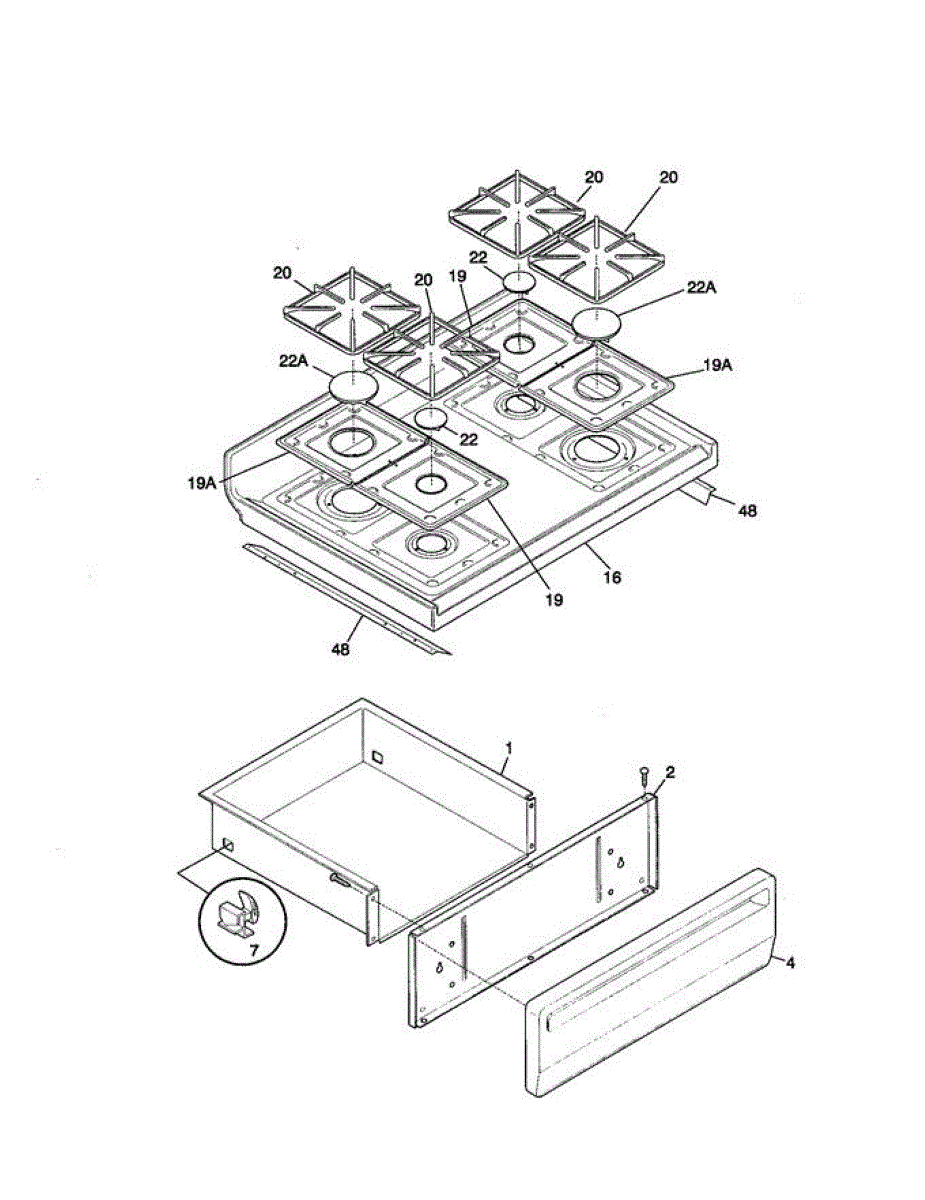 Rear drawer glide for range storage drawers. Mounts to the back of the drawer to enable smooth sliding. Replace if broken, cracked, or missing.