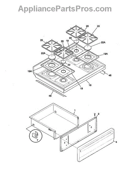 Parts for Tappan TGF375BHBC: Top / Drawer Parts