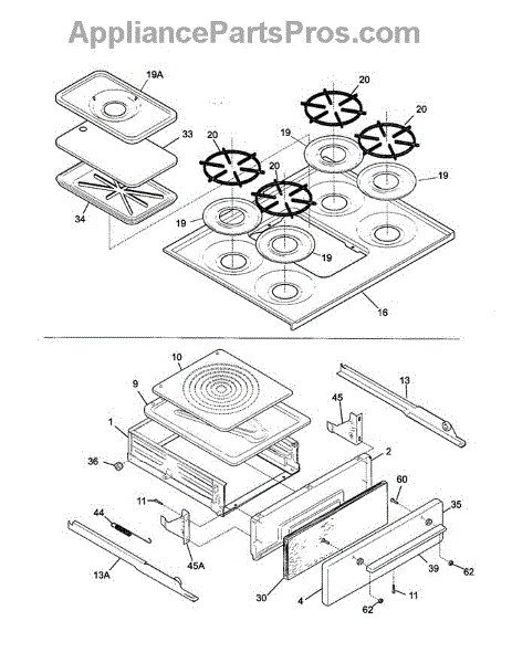 Parts for Tappan TGF645WFW5: Top / Drawer Parts