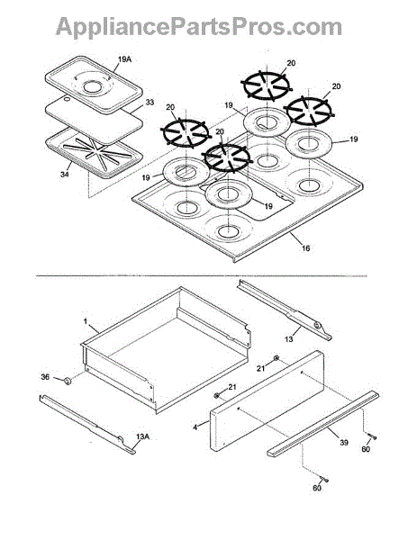 Parts for Tappan TGF657BFB3: Top / Drawer Parts