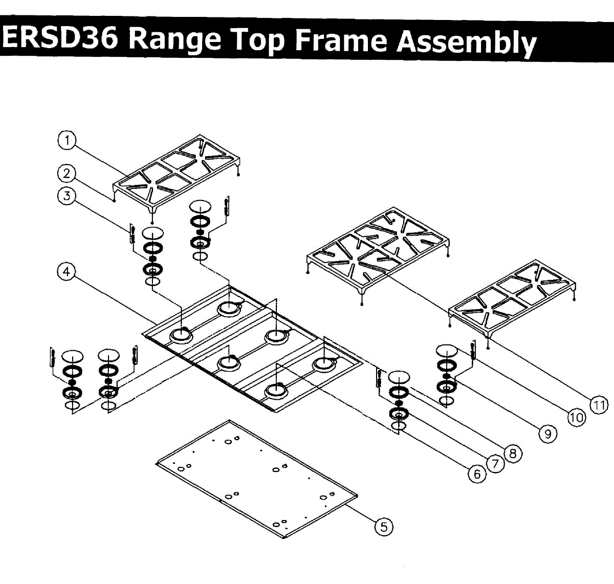 Parts for Dacor ERSD36NG: Top Frame Assembly Parts