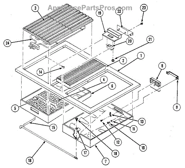 This rock plate support is used on many of the Jenn-air grill cartridge rock plates.