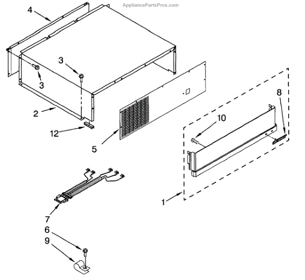 This replacement cover-unit restores the appliance's outer cabinet appearance and protects internal components from dust and debris. It provides a clean finished look and helps keep controls and wiring shielded from accidental contact. What it does