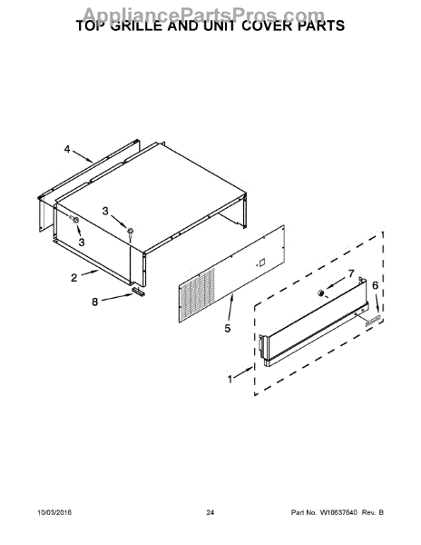 This replacement cover-unit restores the appliance's outer cabinet appearance and protects internal components from dust and debris. It provides a clean finished look and helps keep controls and wiring shielded from accidental contact. What it does