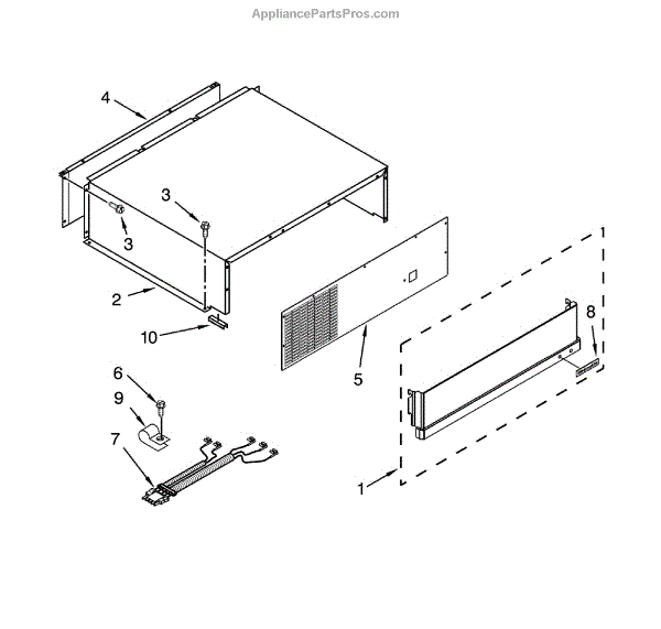 This replacement cover-unit restores the appliance's outer cabinet appearance and protects internal components from dust and debris. It provides a clean finished look and helps keep controls and wiring shielded from accidental contact. What it does