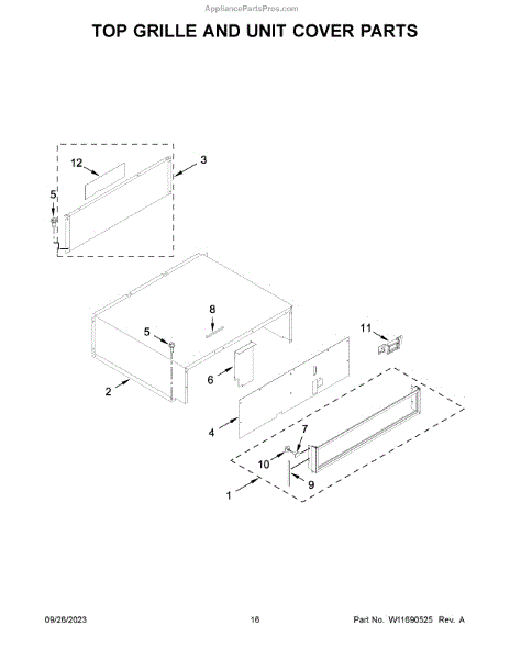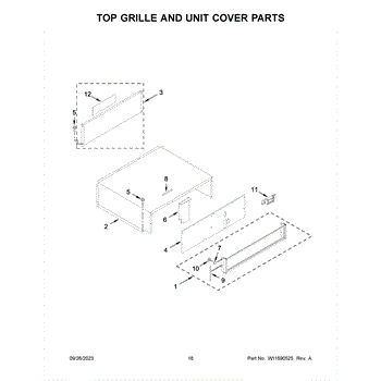 This upper grille assembly frame replaces a cracked or damaged refrigerator grille to restore a clean front appearance and secure the top trim area. It helps conceal components while maintaining proper airflow around the cabinet top. What it does: