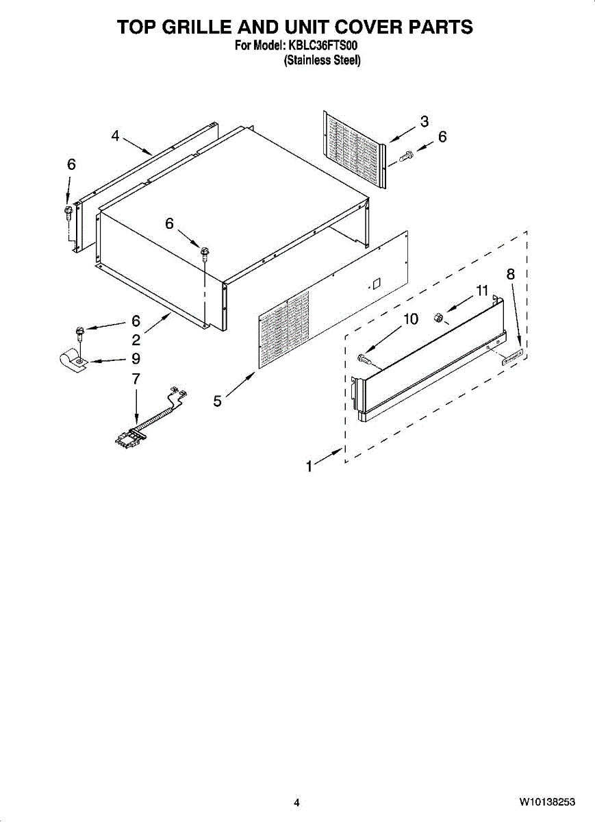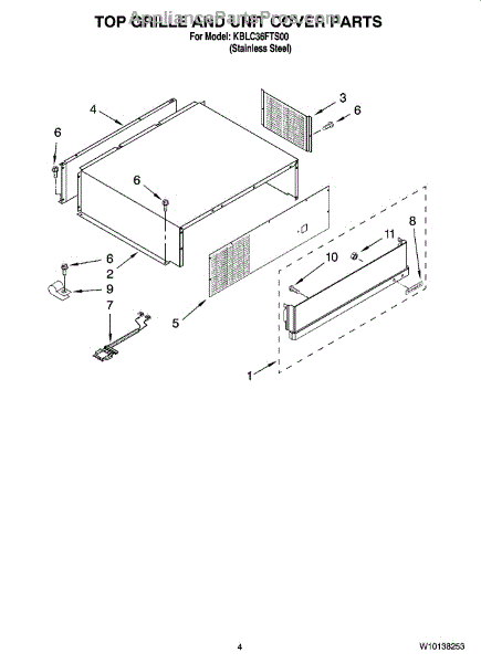 This replacement cover-unit restores the appliance's outer cabinet appearance and protects internal components from dust and debris. It provides a clean finished look and helps keep controls and wiring shielded from accidental contact. What it does