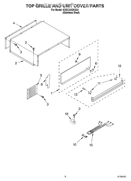 This screw is used to secure the handle end cap to the center of the door. The screw size measures 8-18 x 1/2 inches.