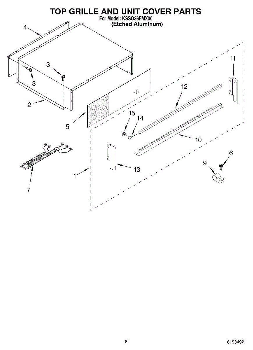This screw is used to secure the handle end cap to the center of the door. The screw size measures 8-18 x 1/2 inches.